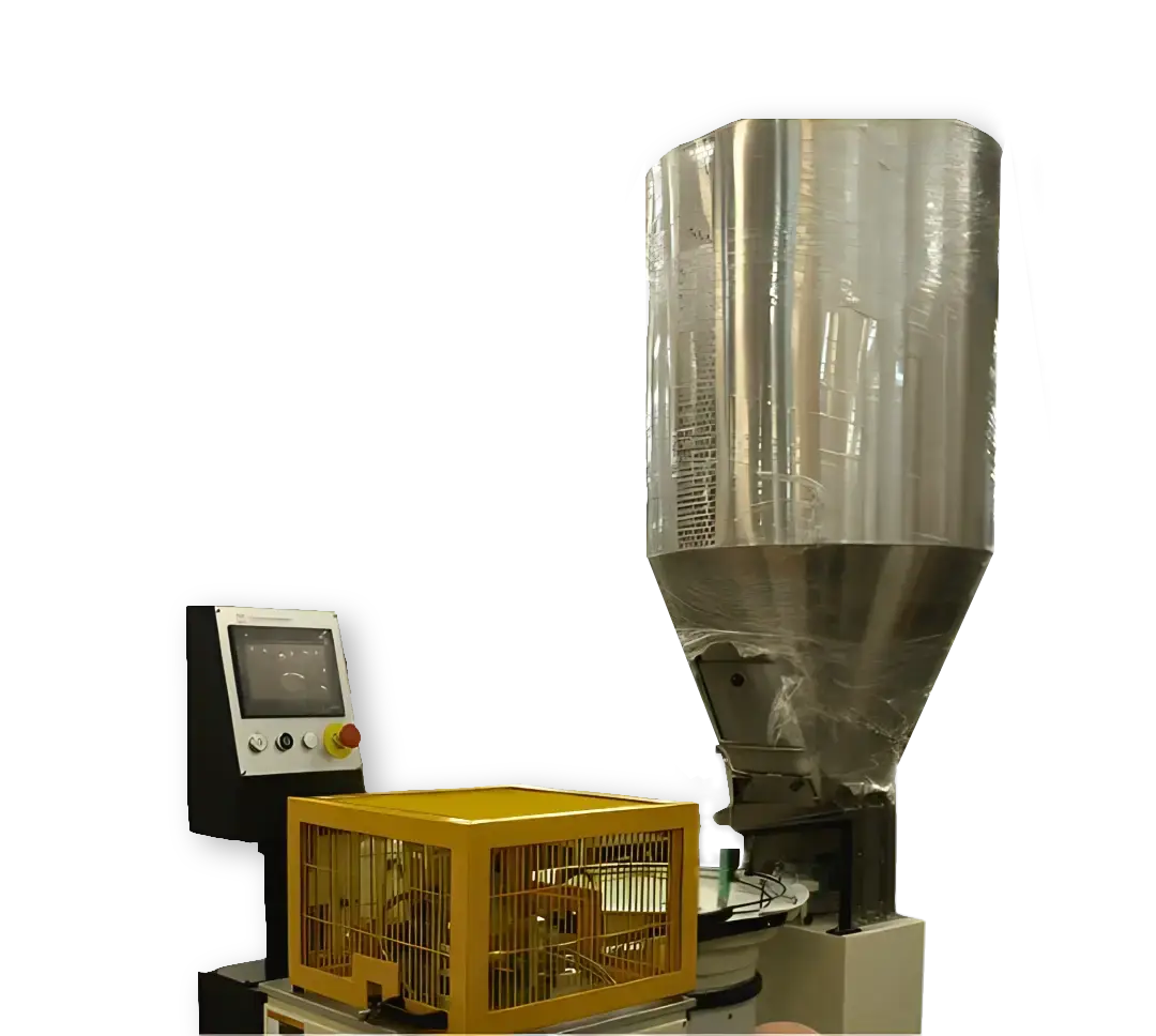 Retifica o corpo das rolhas (regulação da ovalização da superfície) e possui moega cónica em aço inox que garante a ausência de rolhas encravadas nos sistemas de alimentação.