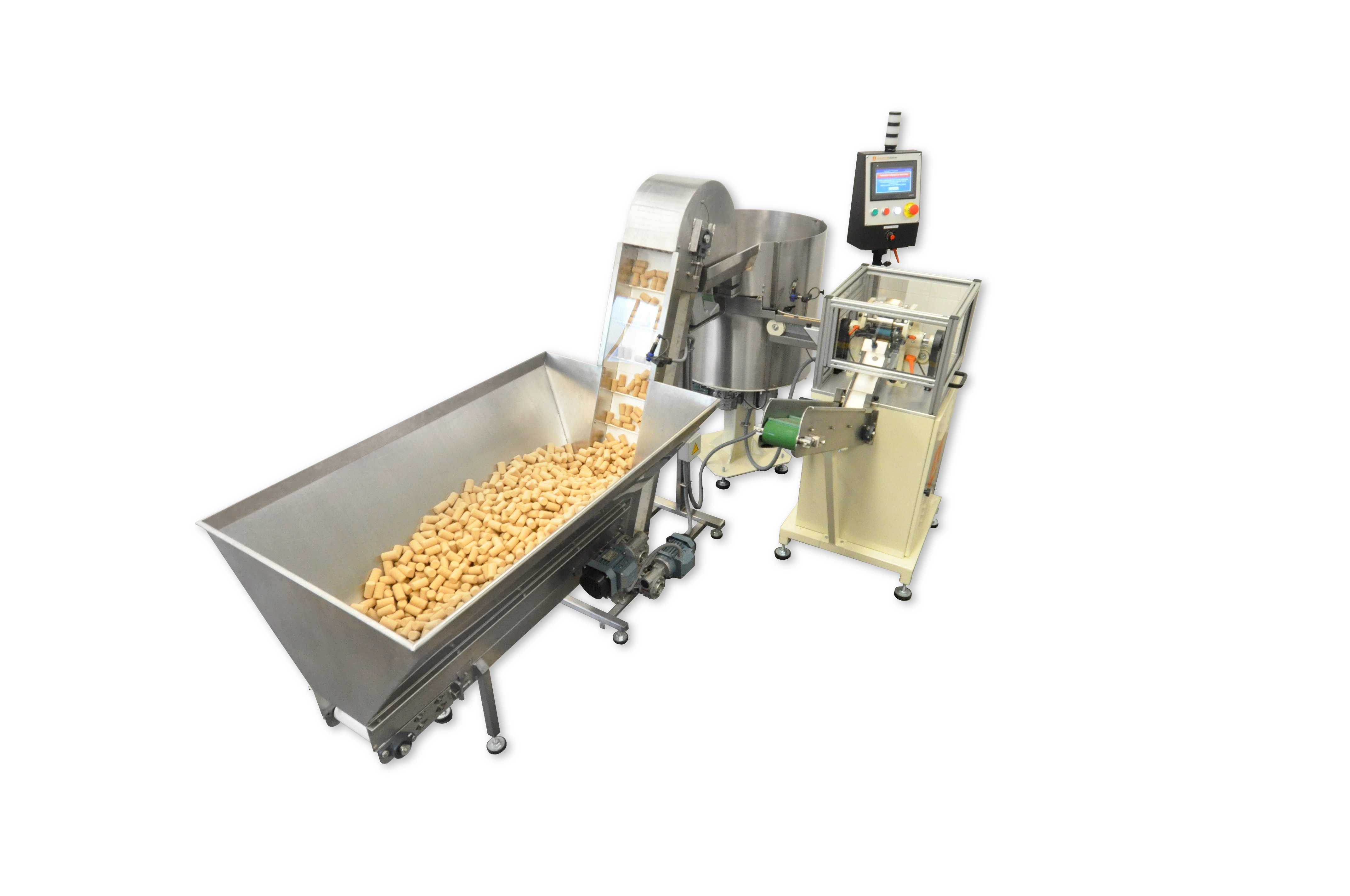 Marcação de rolhas no corpo por tecnologia laser. Adequado para um mix de produtos elevado e volumes médios de produção, com 1 Subsistema Laser e 2 Rolhas a personalizar, em simultâneo.