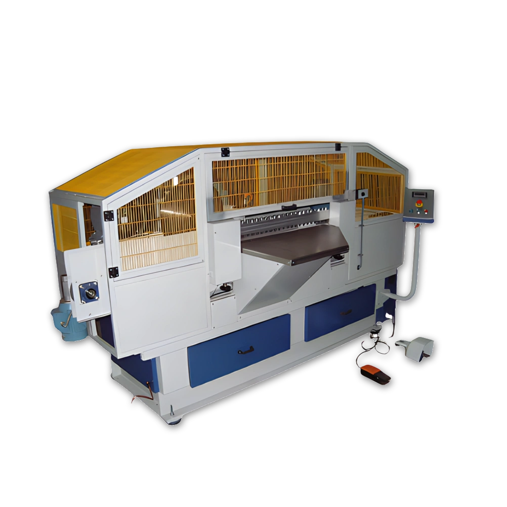 Corte automático de pranchas de cortiça em traços (de várias dimensões), através de faca em movimento de translação.